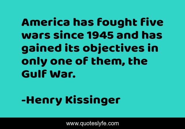 This page presents the quote "America has fought five wars since 1945 and has gained its objectives in only one of them, the Gulf War.". Author of this quote is Henry Kissinger. This quote is about objectives, america, five,.