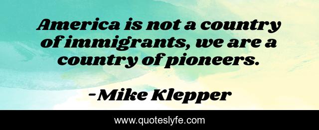 This page presents the quote "America is not a country of immigrants, we are a country of pioneers.". Author of this quote is Mike Klepper. This quote is about pioneer, immigrants, americans, america, pioneers,.