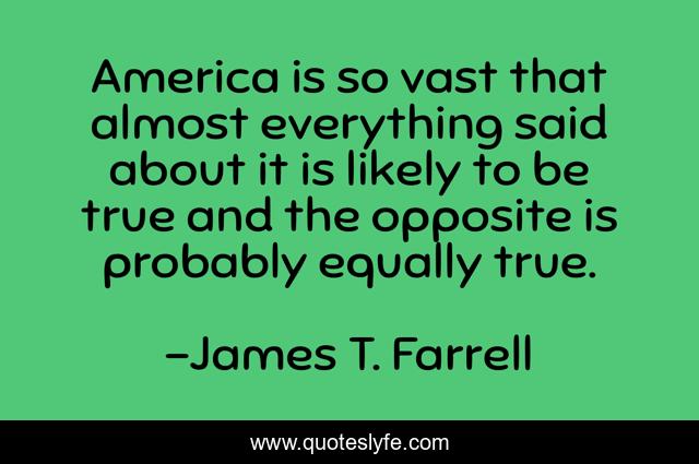 This page presents the quote "America is so vast that almost everything said about it is likely to be true and the opposite is probably equally true.". Author of this quote is James T. Farrell. This quote is about america, americans,.