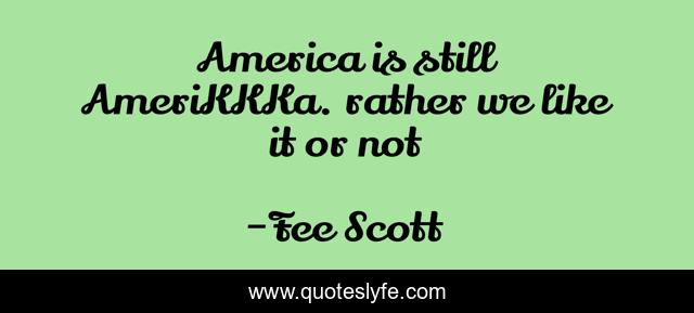 "Fee Scott Quotes." Quoteslyfe.com, 2025. Mon. 08 Dec. 2025. <https://www.quoteslyfe.com/quote/America-is-still-AmeriKKKa-rather-we-like-221167>.