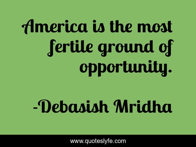 This page presents the quote "America is the most fertile ground of opportunity.". Author of this quote is Debasish Mridha. This quote is about fertile-ground, philosophy, debasish-mridha, quotes, ground-of-opportunity, debasish-mridha-md, inspirational, enthusiasm, america,.