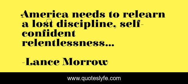 This page presents the quote "America needs to relearn a lost discipline, self-confident relentlessness...". Author of this quote is Lance Morrow. This quote is about relentlessness, patriotism, america, self-confidence,.