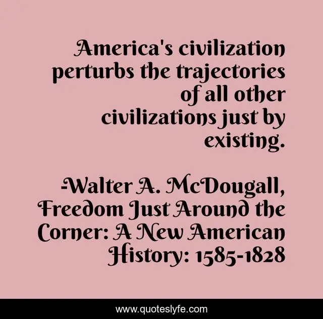 "Walter A. McDougall, Freedom Just Around the Corner: A New American History: 1585-1828 Quotes." Quoteslyfe.com, 2025. Fri. 05 Dec. 2025. <https://www.quoteslyfe.com/quote/America-s-civilization-perturbs-the-trajectories-of-191850>.