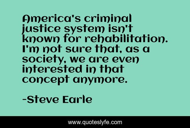 This page presents the quote "America's criminal justice system isn't known for rehabilitation. I'm not sure that, as a society, we are even interested in that concept anymore.". Author of this quote is Steve Earle. This quote is about justice, america, system,.