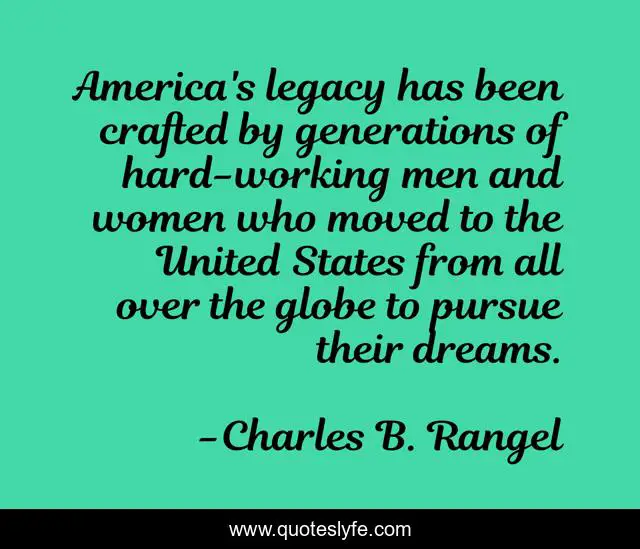 This page presents the quote "America's legacy has been crafted by generations of hard-working men and women who moved to the United States from all over the globe to pursue their dreams.". Author of this quote is Charles B. Rangel. This quote is about america, men, women,.