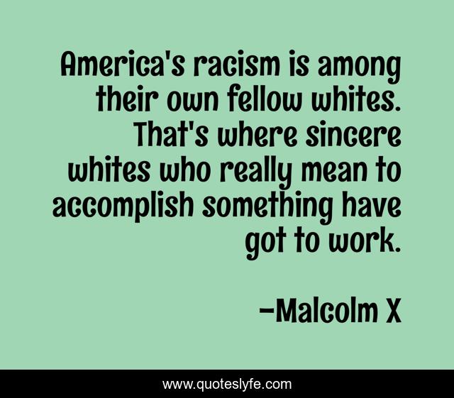 This page presents the quote "America's racism is among their own fellow whites. That's where sincere whites who really mean to accomplish something have got to work.". Author of this quote is Malcolm X. This quote is about racism, white-allies,.