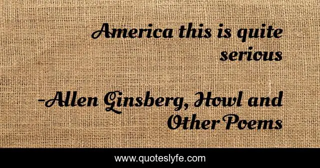 "Allen Ginsberg, Howl and Other Poems Quotes." Quoteslyfe.com, 2025. Tue. 09 Dec. 2025. <https://www.quoteslyfe.com/quote/America-this-is-quite-serious-191702>.