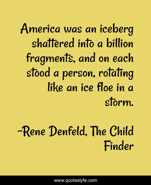 "Rene Denfeld, The Child Finder Quotes." Quoteslyfe.com, 2025. Mon. 08 Dec. 2025. <https://www.quoteslyfe.com/quote/America-was-an-iceberg-shattered-into-a-219909>.