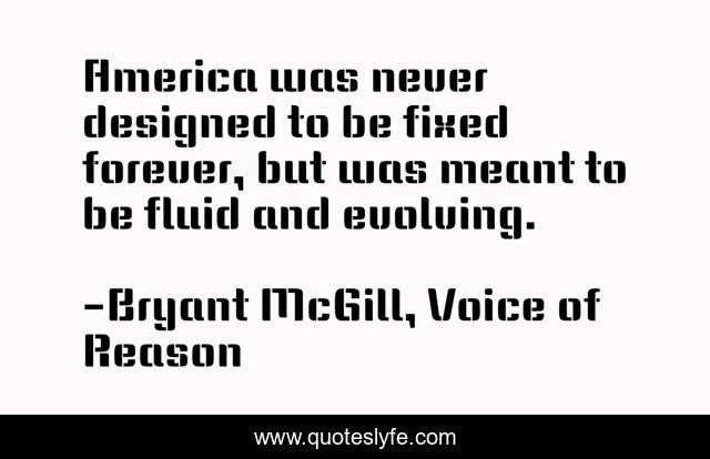 This page presents the quote "America was never designed to be fixed forever, but was meant to be fluid and evolving.". Author of this quote is Bryant McGill, Voice of Reason. This quote is about accepting-change, acceptance, america,.
