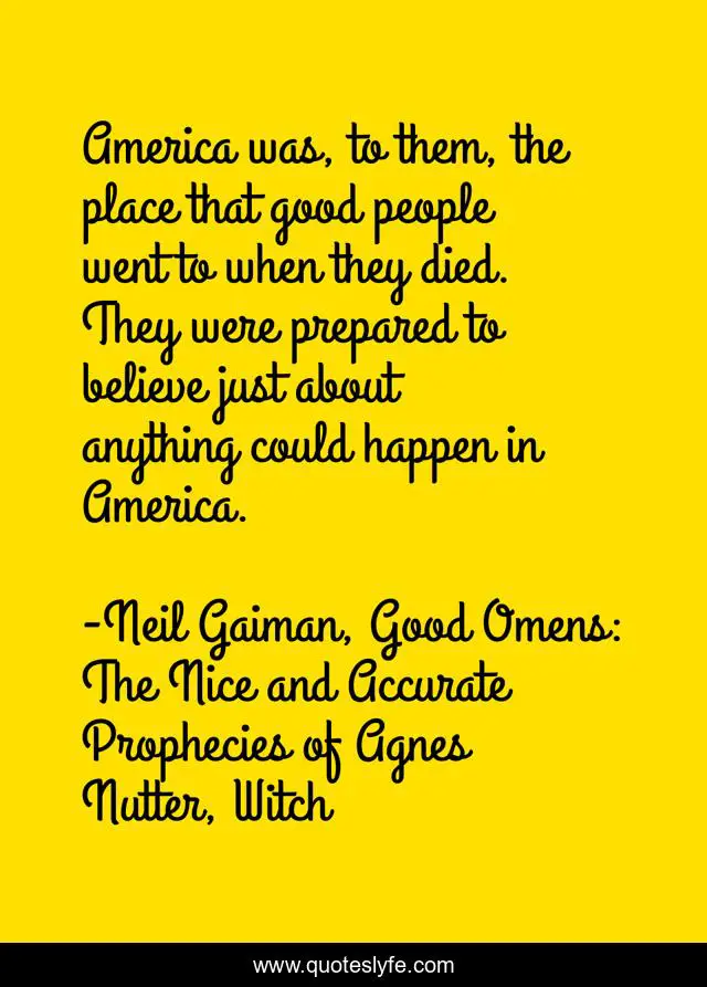 "Neil Gaiman, Good Omens: The Nice and Accurate Prophecies of Agnes Nutter, Witch Quotes." Quoteslyfe.com, 2025. Sat. 06 Dec. 2025. <https://www.quoteslyfe.com/quote/America-was-to-them-the-place-that-21400>.