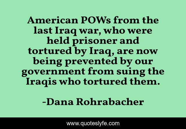 This page presents the quote "American POWs from the last Iraq war, who were held prisoner and tortured by Iraq, are now being prevented by our government from suing the Iraqis who tortured them.". Author of this quote is Dana Rohrabacher. This quote is about american, now, government,.