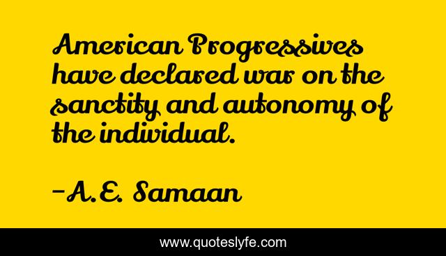 This page presents the quote "American Progressives have declared war on the sanctity and autonomy of the individual.". Author of this quote is A.E. Samaan. This quote is about communists, communism, libertarians, anarcho-capitalism, democratic-socialism, libertarianism, collectivists, anarchy, socialists,.