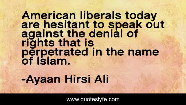 This page presents the quote "American liberals today are hesitant to speak out against the denial of rights that is perpetrated in the name of Islam.". Author of this quote is Ayaan Hirsi Ali. This quote is about liberals, women-s-rights, islam,.