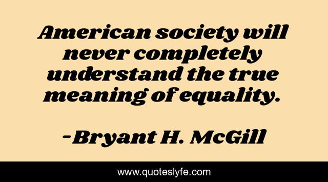 This page presents the quote "American society will never completely understand the true meaning of equality.". Author of this quote is Bryant H. McGill. This quote is about society, american, meaning,.