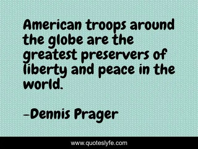 This page presents the quote "American troops around the globe are the greatest preservers of liberty and peace in the world.". Author of this quote is Dennis Prager. This quote is about world, american, greatest,.