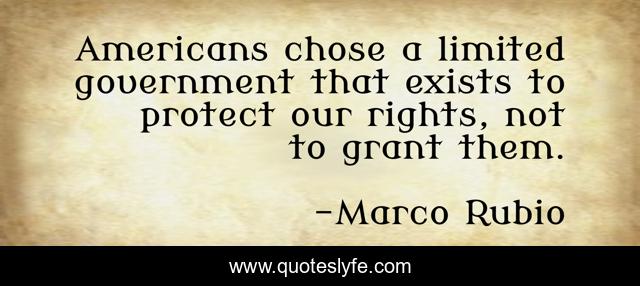 This page presents the quote "Americans chose a limited government that exists to protect our rights, not to grant them.". Author of this quote is Marco Rubio. This quote is about protect, rights,.