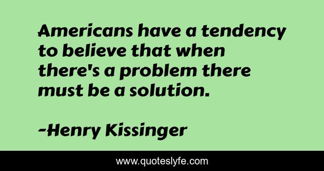 This page presents the quote "Americans have a tendency to believe that when there's a problem there must be a solution.". Author of this quote is Henry Kissinger. This quote is about problem-solving, opportunity, optimism, simplistic,.