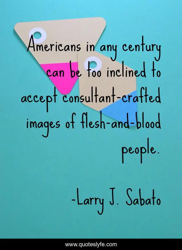 This page presents the quote "Americans in any century can be too inclined to accept consultant-crafted images of flesh-and-blood people.". Author of this quote is Larry J. Sabato. This quote is about motivation, vision, inspiration,.