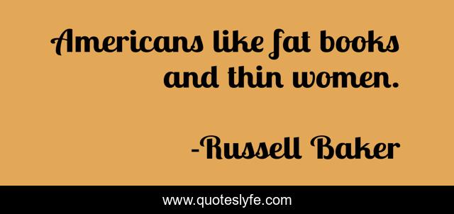 This page presents the quote "Americans like fat books and thin women.". Author of this quote is Russell Baker. This quote is about like, fat, thin,.