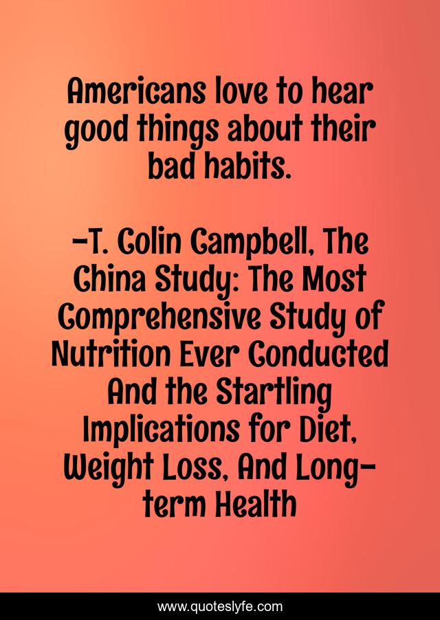"T. Colin Campbell, The China Study: The Most Comprehensive Study of Nutrition Ever Conducted And the Startling Implications for Diet, Weight Loss, And Long-term Health Quotes." Quoteslyfe.com, 2026. Tue. 13 Jan. 2026. <https://www.quoteslyfe.com/quote/Americans-love-to-hear-good-things-about-177144>.