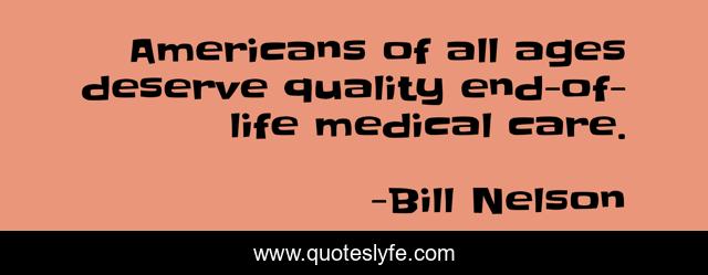 This page presents the quote "Americans of all ages deserve quality end-of-life medical care.". Author of this quote is Bill Nelson. This quote is about deserve, quality, care,.