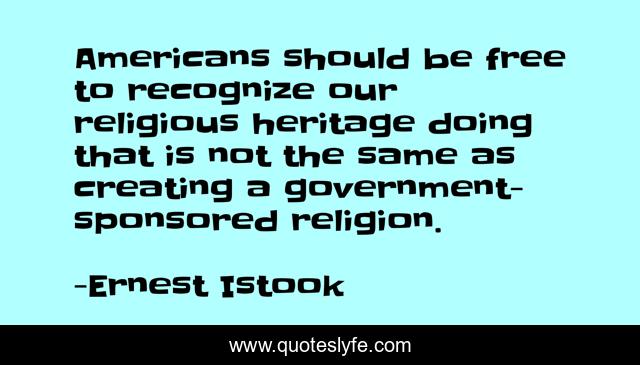 This page presents the quote "Americans should be free to recognize our religious heritage doing that is not the same as creating a government-sponsored religion.". Author of this quote is Ernest Istook. This quote is about creating, free,.