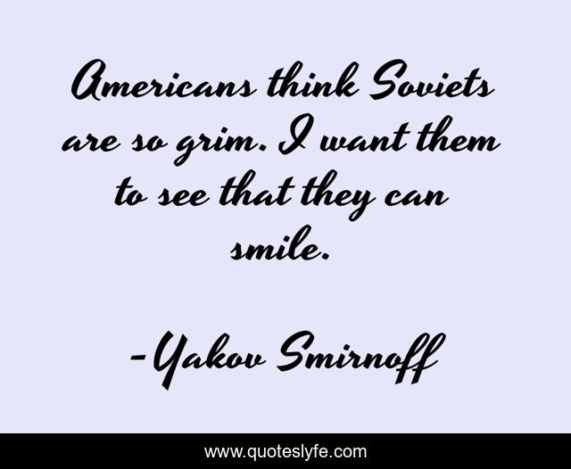 This page presents the quote "Americans think Soviets are so grim. I want them to see that they can smile.". Author of this quote is Yakov Smirnoff. This quote is about see, think,.
