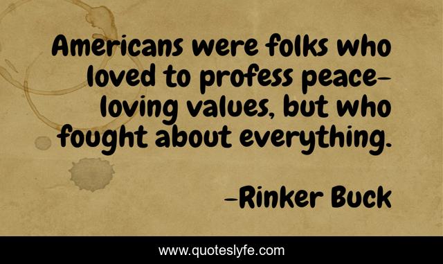 This page presents the quote "Americans were folks who loved to profess peace-loving values, but who fought about everything.". Author of this quote is Rinker Buck. .