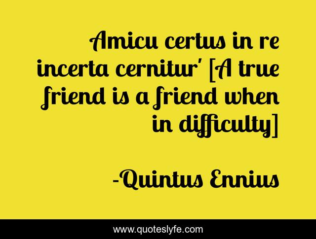 This page presents the quote "Amicu certus in re incerta cernitur' [A true friend is a friend when in difficulty]". Author of this quote is Quintus Ennius. This quote is about enthusiasm, reliability, friendship, inspirational,.