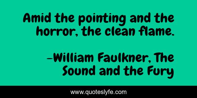 This page presents the quote "Amid the pointing and the horror, the clean flame.". Author of this quote is William Faulkner, The Sound and the Fury. This quote is about sound-and-fury, madness, clean-flame, existentialism, fire-of-love, faulkner,.