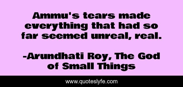 This page presents the quote "Ammu's tears made everything that had so far seemed unreal, real.". Author of this quote is Arundhati Roy, The God of Small Things. This quote is about real, india, realness, reality,.