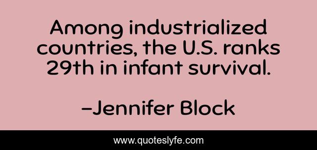 This page presents the quote "Among industrialized countries, the U.S. ranks 29th in infant survival.". Author of this quote is Jennifer Block. .