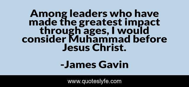 This page presents the quote "Among leaders who have made the greatest impact through ages, I would consider Muhammad before Jesus Christ.". Author of this quote is James Gavin. This quote is about kindness, love, fair, universal, gavin, general, message, islam, lessons,.