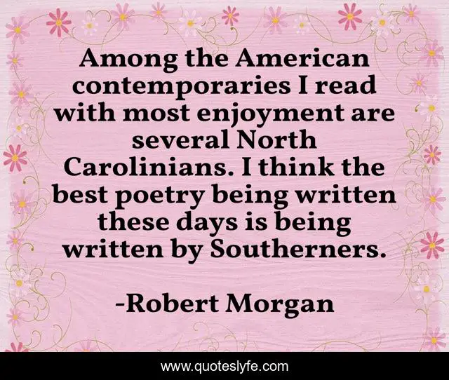 This page presents the quote "Among the American contemporaries I read with most enjoyment are several North Carolinians. I think the best poetry being written these days is being written by Southerners.". Author of this quote is Robert Morgan. This quote is about american, think, best,.