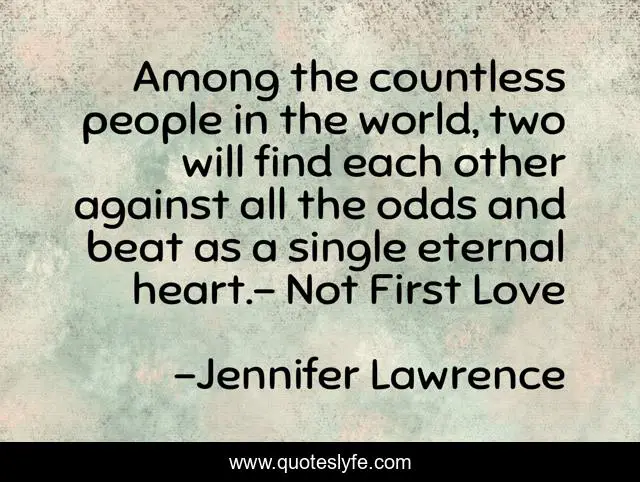 This page presents the quote "Among the countless people in the world, two will find each other against all the odds and beat as a single eternal heart.- Not First Love". Author of this quote is Jennifer Lawrence. This quote is about love, supernatural, affection, romance-novels,.