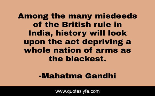 This page presents the quote "Among the many misdeeds of the British rule in India, history will look upon the act depriving a whole nation of arms as the blackest.". Author of this quote is Mahatma Gandhi. This quote is about india, look, nation,.