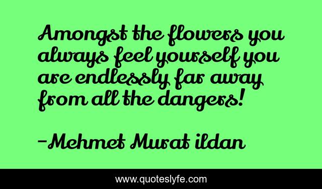 This page presents the quote "Amongst the flowers you always feel yourself you are endlessly far away from all the dangers!". Author of this quote is Mehmet Murat ildan. .