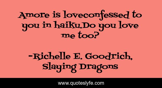 This page presents the quote "Amore is loveconfessed to you in haiku.Do you love me too?". Author of this quote is Richelle E. Goodrich, Slaying Dragons. This quote is about love, richelle-e-goodrich, amore, richelle, haiku, richelle-goodrich, affection,.