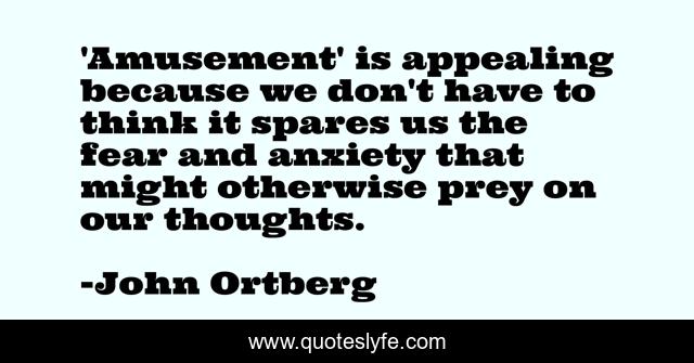 This page presents the quote "'Amusement' is appealing because we don't have to think it spares us the fear and anxiety that might otherwise prey on our thoughts.". Author of this quote is John Ortberg. This quote is about anxiety, think, thoughts,.
