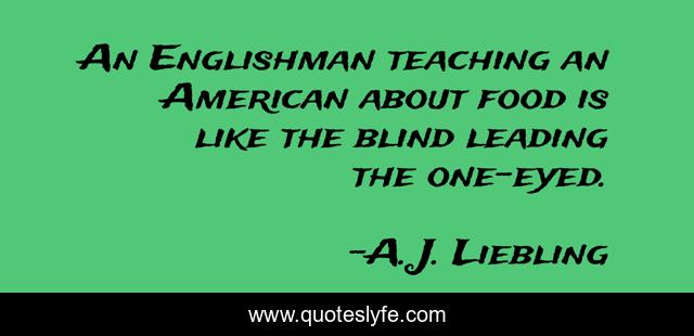 This page presents the quote "An Englishman teaching an American about food is like the blind leading the one-eyed.". Author of this quote is A. J. Liebling. This quote is about blind, american, englishman,.