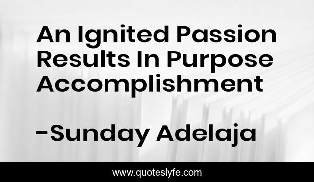 This page presents the quote "An Ignited Passion Results In Purpose Accomplishment". Author of this quote is Sunday Adelaja. This quote is about ignited, accomplishment, passion, purpose, result,.
