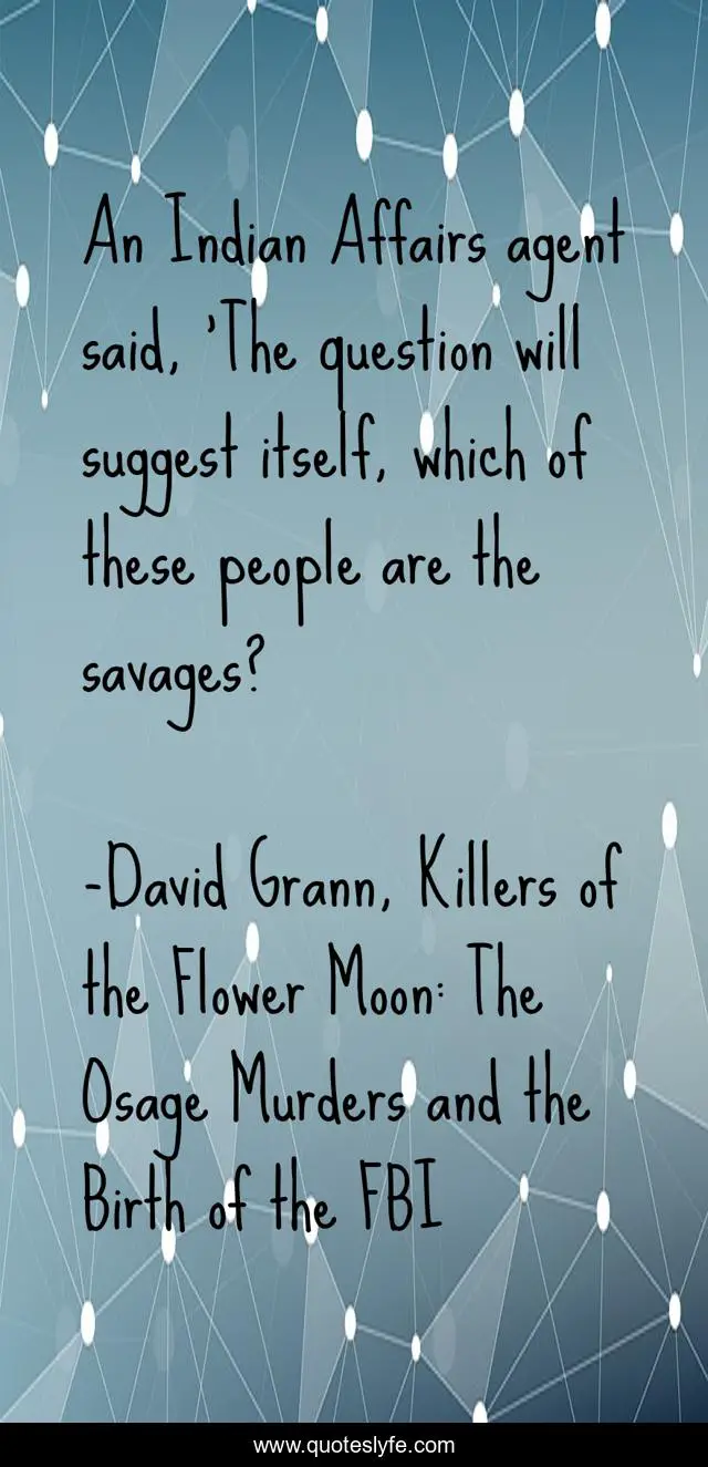 "David Grann, Killers of the Flower Moon: The Osage Murders and the Birth of the FBI Quotes." Quoteslyfe.com, 2025. Mon. 08 Dec. 2025. <https://www.quoteslyfe.com/quote/An-Indian-Affairs-agent-said-The-question-174016>.