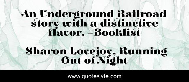 "Sharon Lovejoy, Running Out of Night Quotes." Quoteslyfe.com, 2025. Fri. 05 Dec. 2025. <https://www.quoteslyfe.com/quote/An-Underground-Railroad-story-with-a-distinctive-224689>.
