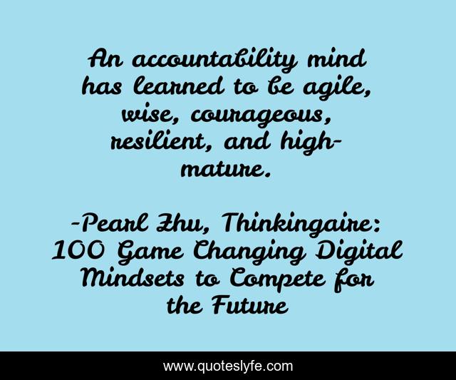 This page presents the quote "An accountability mind has learned to be agile, wise, courageous, resilient, and high-mature.". Author of this quote is Pearl Zhu, Thinkingaire: 100 Game Changing Digital Mindsets to Compete for the Future. This quote is about accountability, mindset, wisdom,.