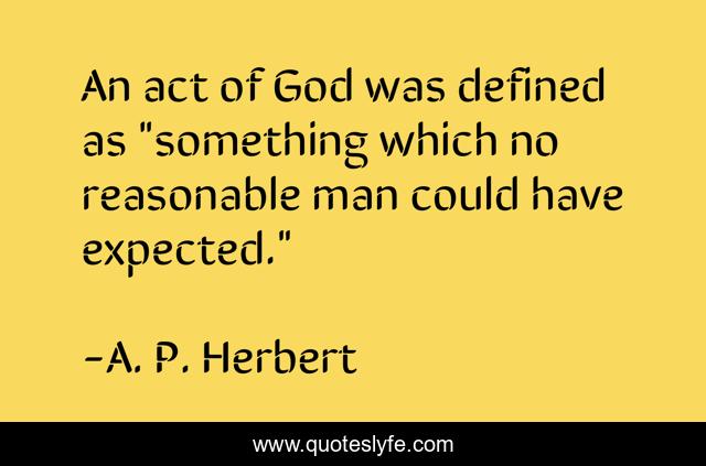 This page presents the quote "An act of God was defined as "something which no reasonable man could have expected."". Author of this quote is A. P. Herbert. .