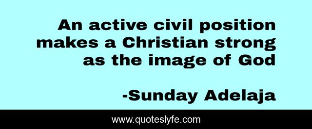 This page presents the quote "An active civil position makes a Christian strong as the image of God". Author of this quote is Sunday Adelaja. This quote is about christian, civil, god, image, actice, position, strong,.
