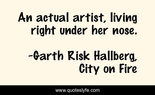 This page presents the quote "An actual artist, living right under her nose.". Author of this quote is Garth Risk Hallberg, City on Fire. This quote is about city-on-fire, artist, garth-risk-hallberg,.