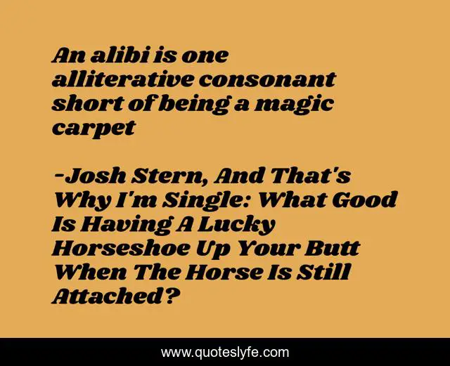 "Josh Stern, And That's Why I'm Single: What Good Is Having A Lucky Horseshoe Up Your Butt When The Horse Is Still Attached? Quotes." Quoteslyfe.com, 2025. Fri. 05 Dec. 2025. <https://www.quoteslyfe.com/quote/An-alibi-is-one-alliterative-consonant-short-134000>.