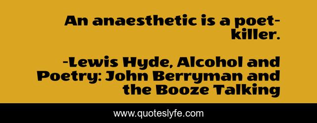 "Lewis Hyde, Alcohol and Poetry: John Berryman and the Booze Talking Quotes." Quoteslyfe.com, 2025. Tue. 09 Dec. 2025. <https://www.quoteslyfe.com/quote/An-anaesthetic-is-a-poet-killer-25100>.