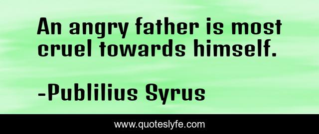 This page presents the quote "An angry father is most cruel towards himself.". Author of this quote is Publilius Syrus. This quote is about angry, father, cruel,.